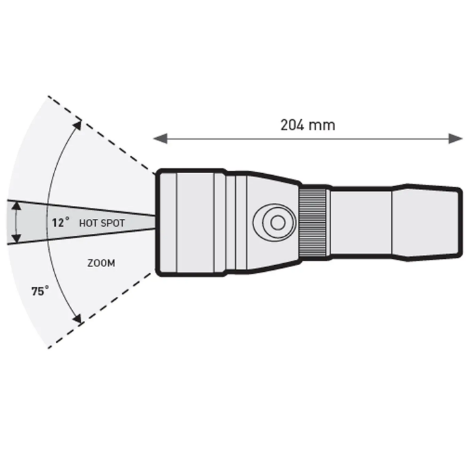 The battery can be recharged via a USB cable connected to a PC or any 5-volt adapter. The battery charger with LED charge indicator allows you to easily see the current charge level. The tubular handle allows you to use the flashlight with just one hand.